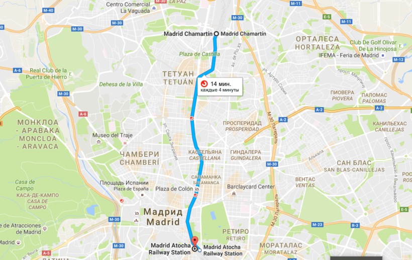 - Мадрид - Мадрид Аточа - 0,5 евро;