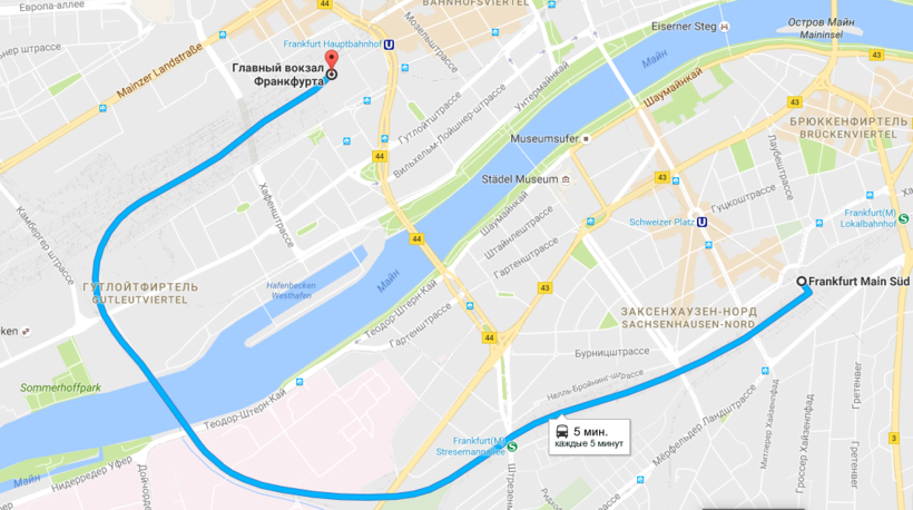 Выспавшись и позавтракав, поспешите на вокзал и грузитесь в нужный поезд, который привезет прямёхонько в Германию с точностью до минуты, а именно прибудет в 15:58. И опять же - есть вагон времени, так как локомотив на Прагу отходит с южного вокзала Франкфурта почти в час ночи, до которого еще нужно доехать трамваями S3, S4, S, S6 с центрального вокзала.