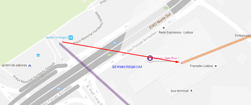 На метро едем на станцию Jardim Zoologico, и быстро переходим на станцию Sete Rios. Оттуда наш автобус тю-тю на Воркутю.