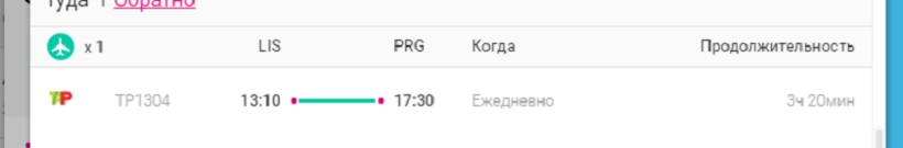 Ниже приведена информация о том, сколько часов вам потребуется, чтобы добраться от Лиссабона до Праги, а также приведена примерная стоимость проезда (средняя цена билета) на том или ином виде транспорта.