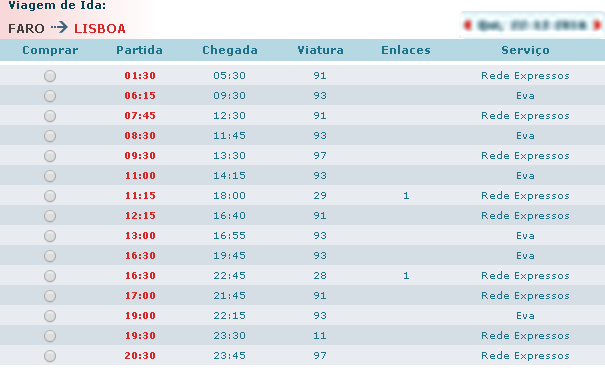 Все автобусы на данном направлении среднего класса, но оборудованы кондиционерами. В Лиссабон автобус прибывает примерно через 3 часа 20 минут на станцию находящуюся на улице P.Prof.Lima Basto, 133.