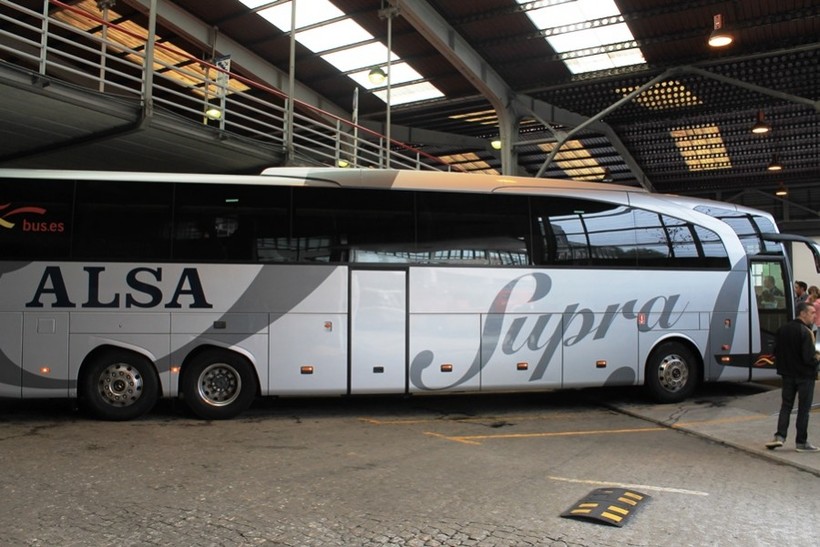Билеты на автобус стоят примерно 80 евро, посмотреть подробнее можно в интернете, например на сайте компании Alsa.