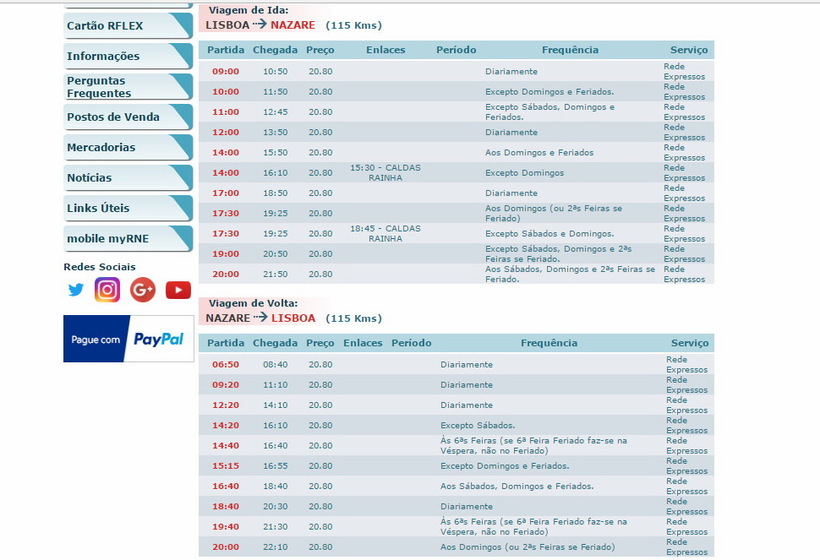 Покупка билетов возможна в кассах автовокзала и онлайн, на сайте перевозчика Rede Expressos, за 30 дней до поездки. Билеты продаются с фиксированными местами (Lugar), кроме этого на билете указан номер рейса (Viatura), по которому вы найдете платформу отправления на табло автовокзала.