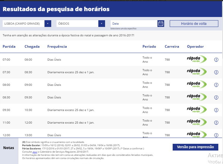 Автобус отправляется с автовокзала Campo Grande, который находится на одноименной станции метро (пересечение желтой и зеленой веток). Расписание и цены на билеты можно посмотреть на сайте перевозчика Rodotejo, при выборе места отправления выбирайте Lisboa (Campo Grande). Обратите внимание на то, что Обидуш не является конечной остановкой, автобус идет до Caldas de Rainha.
