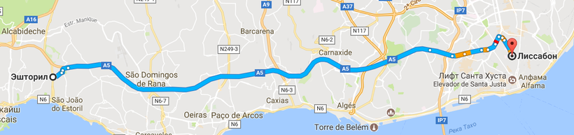Расстояние от Эшторила до Лиссабона
