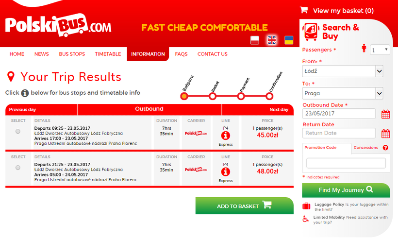 - У PolskiBus билеты стоят 45-48 злотых (10.5-11 евро).