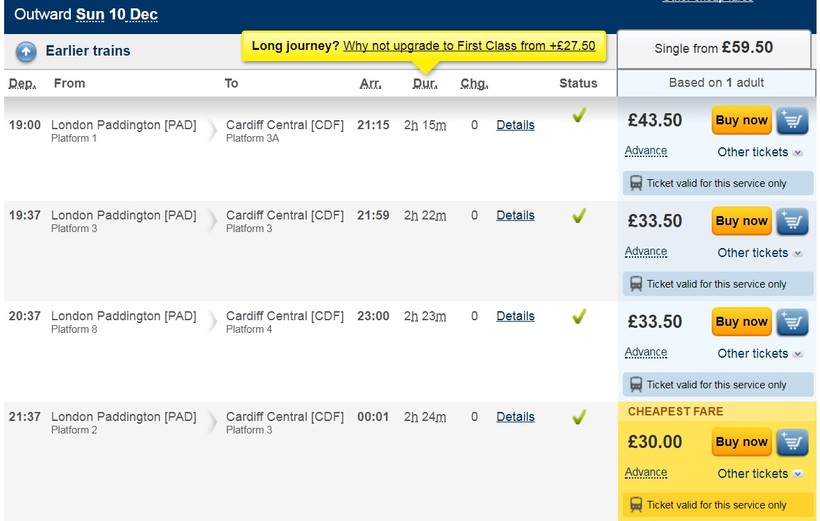Чтобы узнать расписание поездов, зайдите на сайт железной дороги, выберите все станции Лондона и все станции Кардиффа, пред вами откроется такая страница: