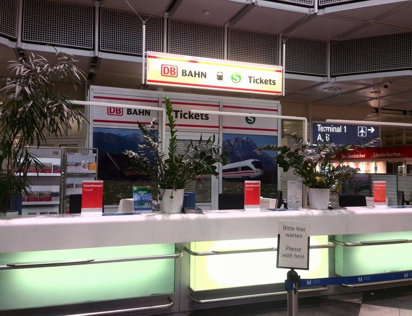 Именно этот вариант я могу рекомендовать больше всего, так как мы с мужем именно на нем добирались, он хорош тем, что добираться быстро. На первый взгляд, вам может показаться, что покупать билеты, искать станцию – сложно, но поверьте, если вы хотя бы один раз купите билет в терминале самостоятельно, далее вы сможете ездить по Германии свободно:) Прежде всего, вам необходимо найти железнодорожную станцию, чтобы найти ее, вам необходимо ориентироваться на указатели, которые есть в аэропорту. Указателей всего два, вернее, двух цветов: