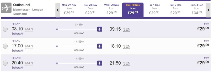 Если так посчитать, самолет - не самый быстрый способ добраться в Лондон, поезд от вокзала Manchester Piccadilly до London Euston доезжает за 2-3 часа, по пути делает много остановок в пригороде Лондона.