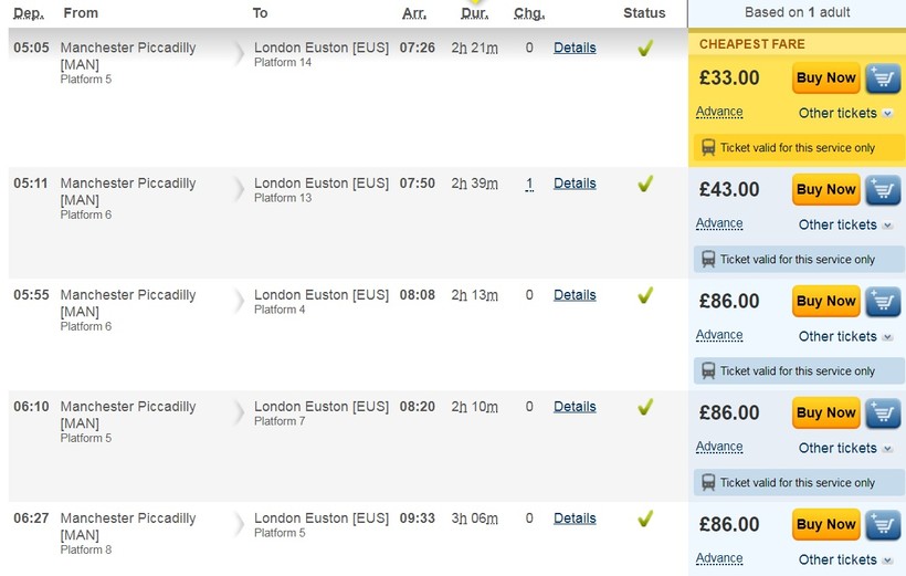 Билеты продаются всякие разные. Есть на конкретный рейс, обозначаются они Advance, дешевле этих билетов, купленных за месяц, нет ничего. Проездной Anytime стоит существенно дороже, зато им можно воспользоваться без привязки к рейсу.