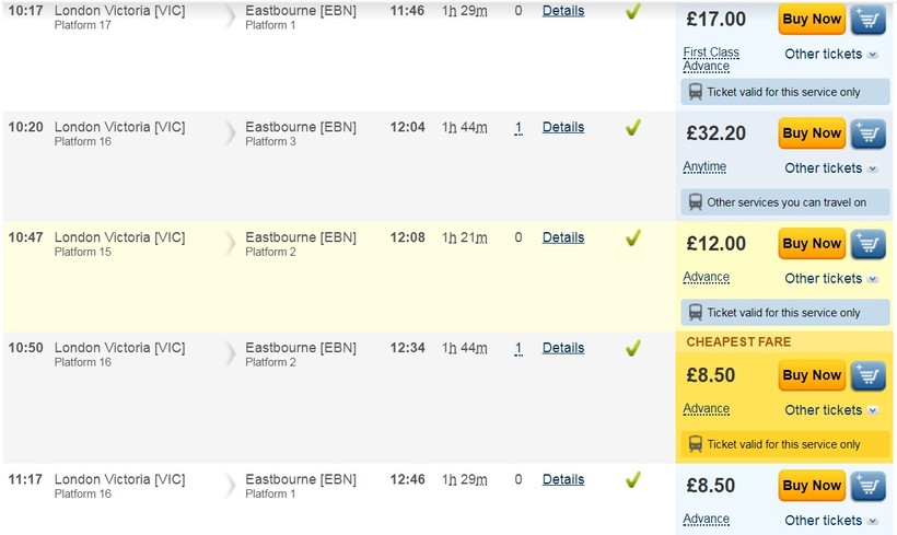 Запрыгнув в нужный поезд, не спешите расслабляться, в Великобритании принято по пути отцеплять вагоны от состава и присоединять к другим рейсам. Так можно вместо Истборна приехать в Гатвик. Информацию объявляет диспетчер, также она высвечивается на табло в вагоне.
