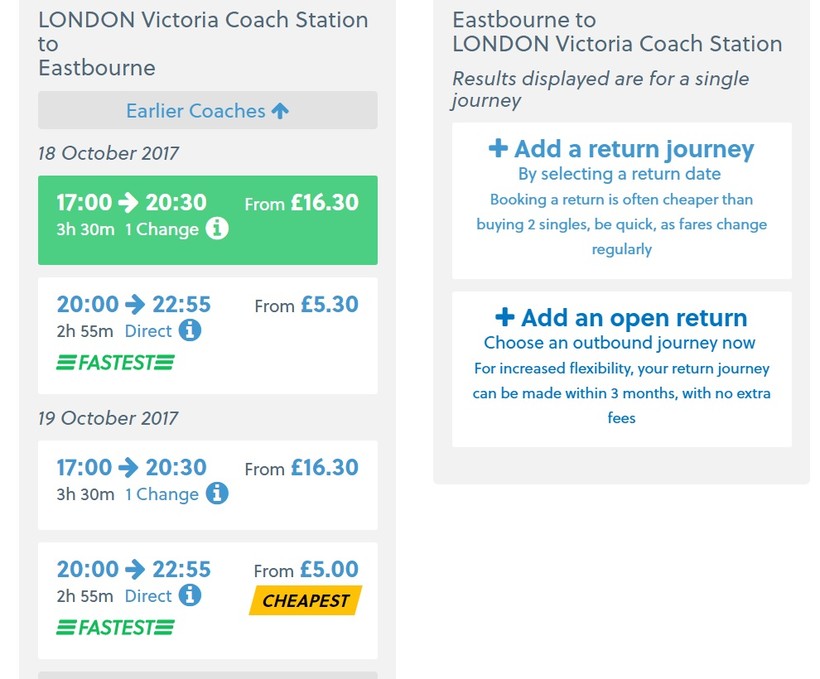 Автобус — не самый подходящий транспорт в Истборн, прямой рейс National Express отправляется лишь раз в день: