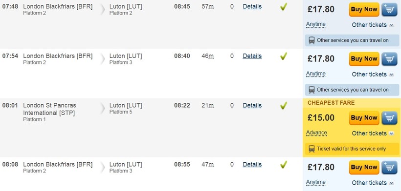 Билеты продаются в терминалах на вокзале и на сайте National Rail. Если вам нужно добраться в аэропорт, тогда покупайте билет не до станции Luton Airport Parkway, а до Luton Airport, тогда в стоимость будет включен проезд на шаттле.