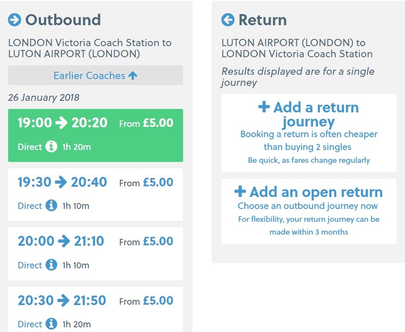 На автобусе можно доехать в Лутон и аэропорт без пересадок. Например, на рейсах National Express, которые отправляются круглосуточно с автостанции London Victoria Coach Station: