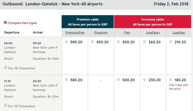 Самые дешевые билеты у Norwegian и British Airways, цены начинаются от 200 фунтов (220 евро). У остальных авиакомпаний билеты стоят 1000-1500 фунтов (1100-1700 евро). Еще посмотрите варианты с пересадками, я видела билеты по 600-800 евро.