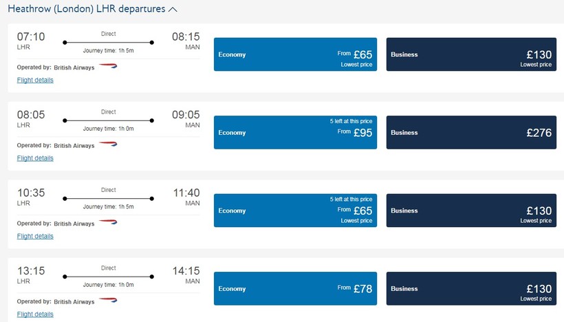 И рейсы British Airways из аэропорта Heathrow. Этих намного больше, полное расписание у меня не поместилось на странице: