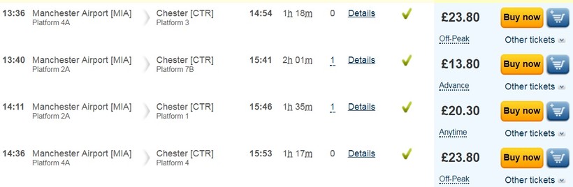 Билеты на поезд стоят не дешевле перелета в Манчестер, зато двух часов будет достаточно, чтобы переместится из центра Лондона в центр Честера без дополнительных пересадок.