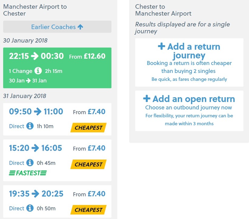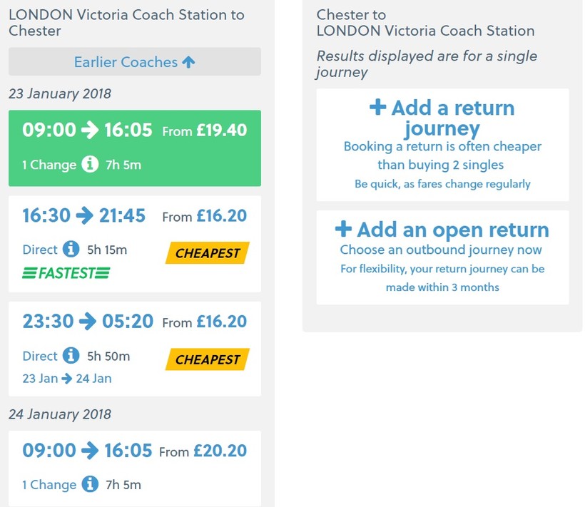 Альтернатива поезду всегда найдется, но автобусов может быть не так много. Из Лондона в Честер ездит только два рейса: