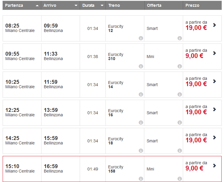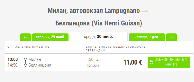 Билет из Милана в Беллинцоне обойдется от 9 до 29 евро. Как видите, разрыв цен ну очень большой, поэтому лучше посмотреть расписание заранее и выбрать наиболее приемлемый вариант.