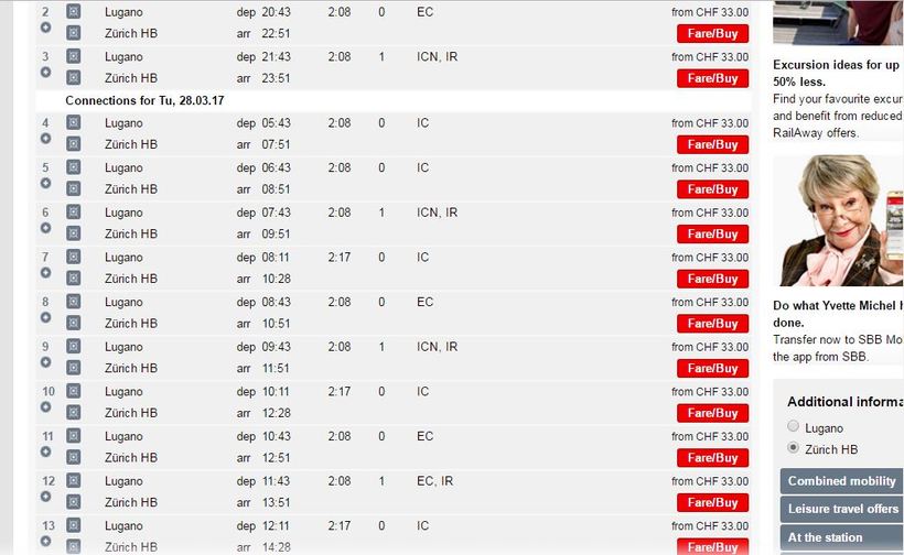 - Если имеется Half Fare Card, то билет будет вдвое дешевле: 33 швейцарских франка и около 31 евро соответственно.