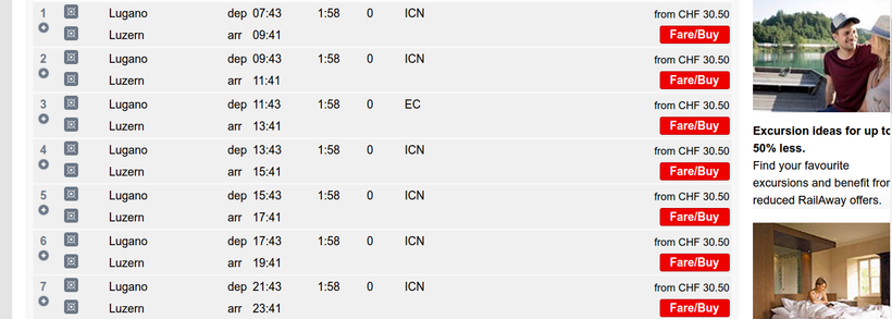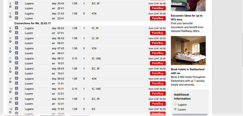 Итак, для начала посмотрим на скриншот, который я сделал с сайта швейцарских железных дорог (на нем всегда можно уточнить актуальное расписание):