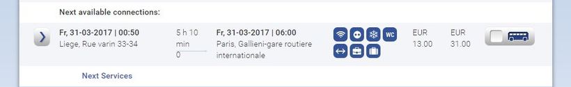 Да, рейс всего один, зато прямой. Точка отправки у автобусов этой компании такая же, а вот точка прибытия это станция метро Gallieni: Зато едет этот автобус быстрее, аж на целый час, что довольно важно при таких дальних путешествиях.