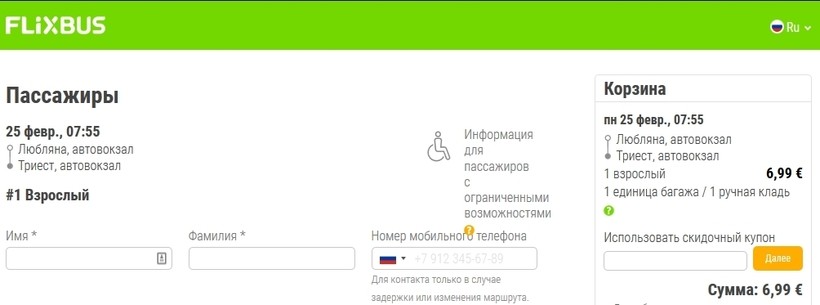 В одну сторону без резервации конкретного места — от 6,99 €.