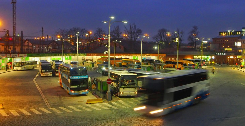 Ежедневно между городами курсирует два прямых автобусных рейса компании FlixBus. Автобусы отправляются от автовокзала Praha Florenc, расположенного по адресу Křižíkova 2110/2b, в 08:25 и 21:50.