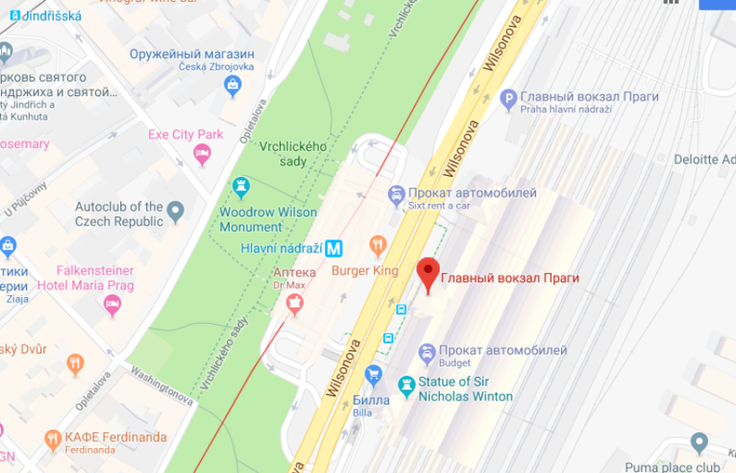 Ежедневно в 16:50 от ж/д вокзала Praha hlavní nádraží (Wilsonova 300/8, Praha 1) отправляется прямой рейс в австрийский город Грац. Поезд прибывает на конечную станцию Graz Hbf