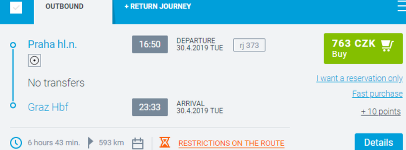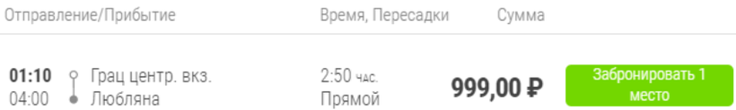 Купить билет на поезд в Грац советую на сайте чешского железнодорожного оператора, а на автобус Любляну — на сайте FlixBus.