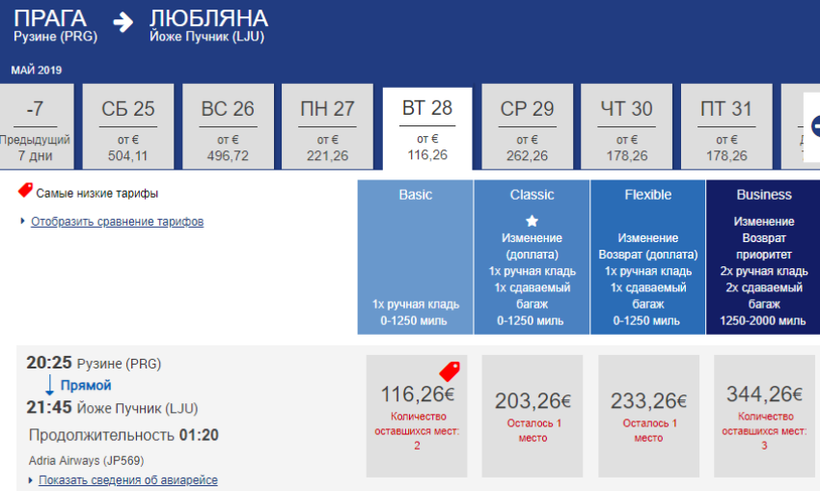 Приобретать билеты советую на сайте Adria Airways. Выгодные предложения, в том числе на рейсы с пересадками, можно найти, например, тут.