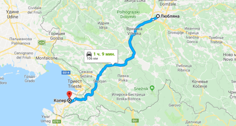 Любляну и Копер разделяют 106 км, так что до словенского побережья Адриатики на автомобиле можно доехать всего за час с небольшим.