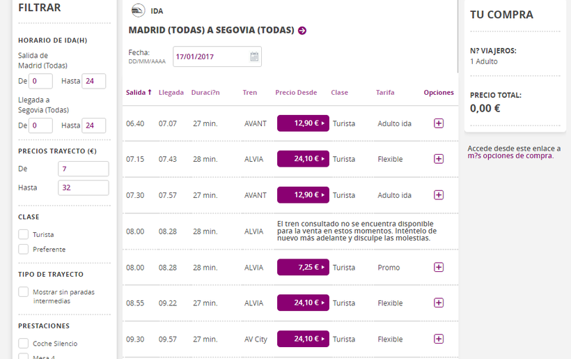 Билеты на поезд по направлению Мадрид - Сеговия можно купить тремя способами: