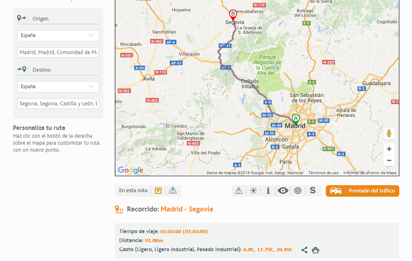 Эти испанские города соединяют трассы А6 и АР-61, по километражу получается чуть меньше ста километров. Именно такое расстояние на машине можно преодолеть за час, даже не делая остановок.