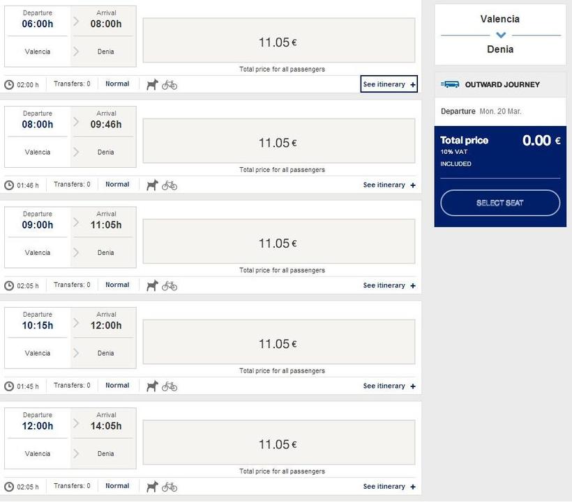 Автобус Валенсия-Дения
