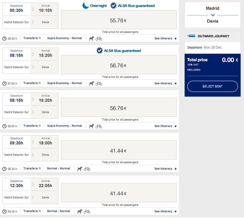 Из Мадрида в Дению на автобусе