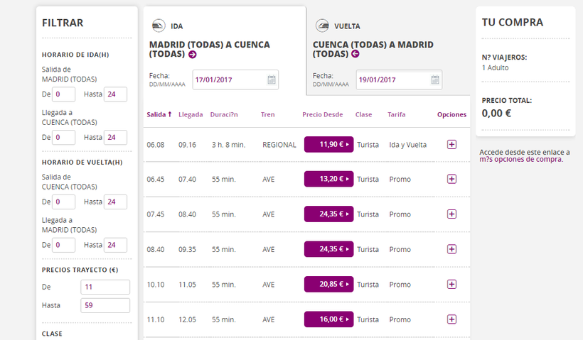 Маршрут Мадрид - Куэнка обслуживается компанией Renfre, на официальном сайте которой и можно подробнее посмотреть расписание движения поездов. Ведь здесь его указывать нет смысла.