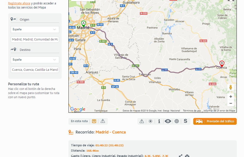 Расстояние от Мадрида до Куэнки, Кастилия-Ла-Манча