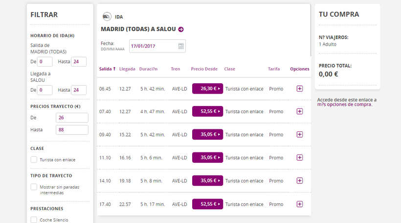 Купить билеты для поездки железнодорожным транспортом в Салоу можно одним из трех способов: