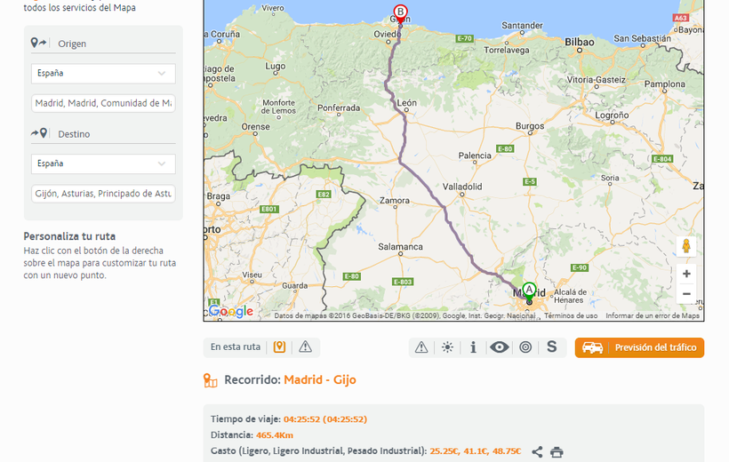 Расстояние от Мадрида до Хихона