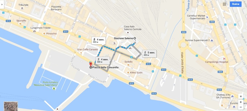 Перевозку пассажиров между Майори и Помпеи осуществляет транспортная компания Sita по маршруту Amalfi - Maiori – Salerno- Pompei, который предусматривает пересадку в Салерно. Мы с мужем поездку начали с автостанции Maiori Centro, расположенной возле отеля Solo, сев на автобус №5120 в направлении Салерно. Рейсы этого маршрута отправляются с 05.35 до 21.20 практически через каждые 15-30 минут.