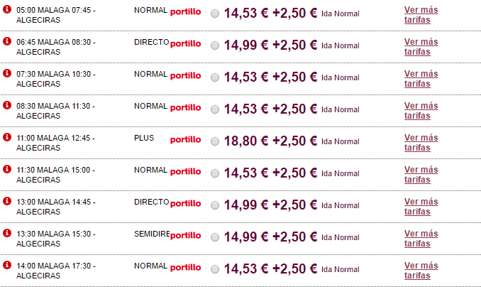Весь проезд обошелся мне в 25 евро. Билет в Альхесирас стоит только 15 евро.