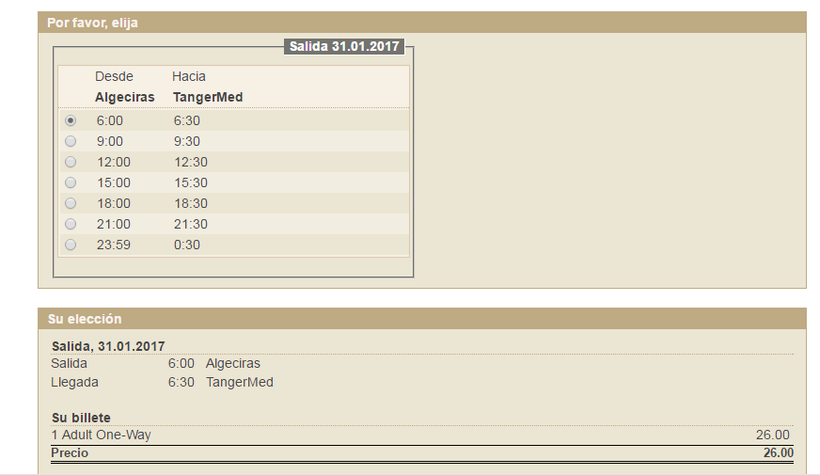 Билет из Тарифы в Танжер я покупала за 37 евро, проезд из Альхесирас обойдется в 26 евро.