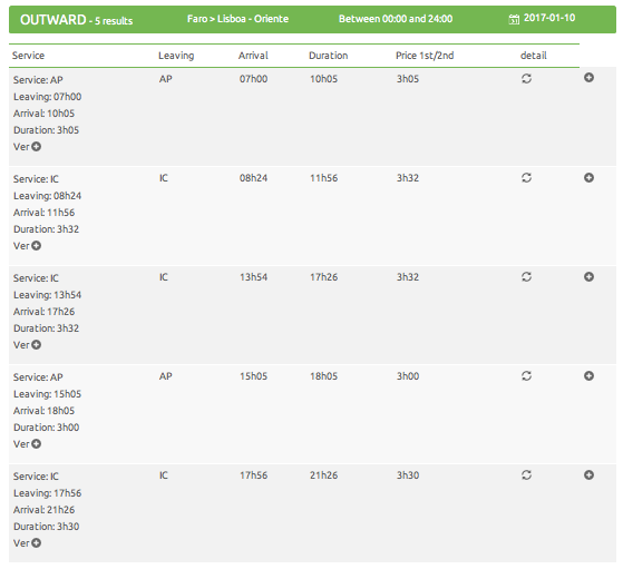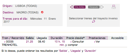 Несмотря на то, что поезда в рассмотренных направлениях курсируют достаточно часто (кроме Лиссабона и Мадрида, под который придется подстраиваться), две пересадки и три продолжительных переезда делают этот вариант абсолютно бессмысленным.