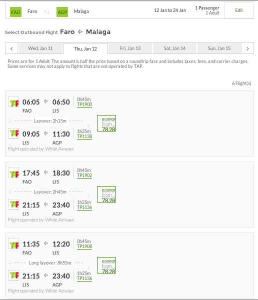 Билеты можно купить на официальном сайте компании TAP Portugal. Билет Фаро-Малага стоит 78 евро, туда-обратно - 158 евро. Таким образом, для нашей большой компании это выливалось в 620 евро. И это если не считать затраты на поездку в аэропорт и обратно… В общем, вариант неплохой, но не самый оптимальный.