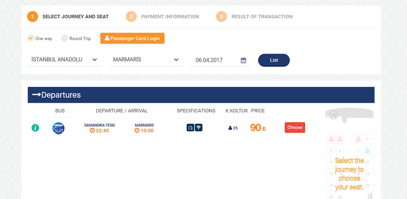 Билет на автобус до Мармариса обойдется в 90 турецких лир (около 25 долларов).