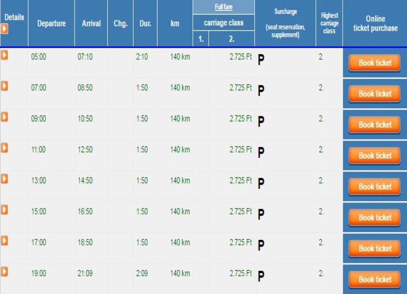 Посмотреть точное расписание поездов «Будапешт-Эгер» можно здесь. Это официальный сайт компании Magyar Államvasútak (MAV), которая обеспечивает железнодорожное сообщение в Венгрии.