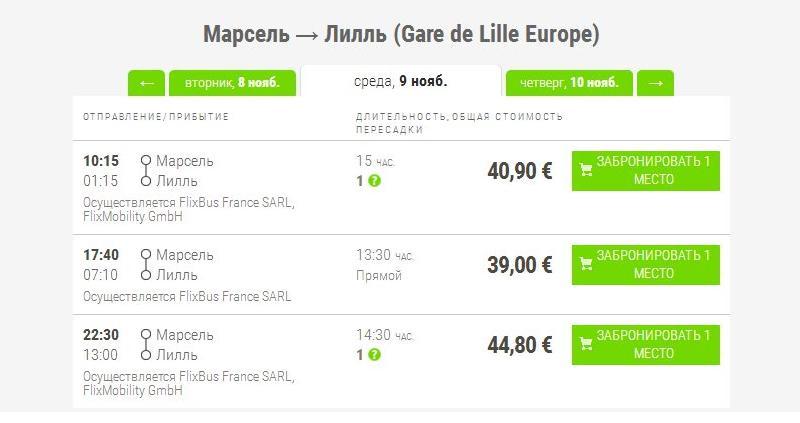 Из Марселя в Лилль на автобусе