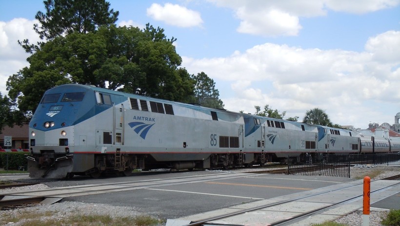 Между городами выполняется два прямых рейса от компании Amtrak. Первый отправляется с Miami Station (8303 NW 37th Avenue) в 08:10 (№ 98 Silver Meteor), а второй — в 11:50 (№ 92 Silver Star). Прибытие на Orlando Station (1400 Sligh Boulevard) соответственно в 13:21 и 19:16.