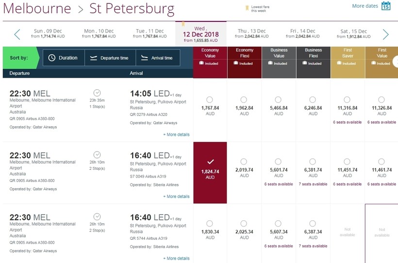 В целом перелет из Мельбурна в Санкт-Петербург займет почти сутки, возможно, и больше, смотря, какие рейсы выбрать.